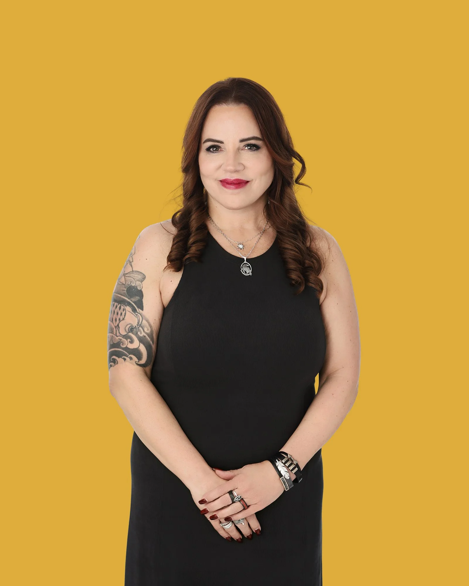 The yellow background in these portraits was sampled directly from her company’s website—so these portraits will be an exact match to their branding colors!