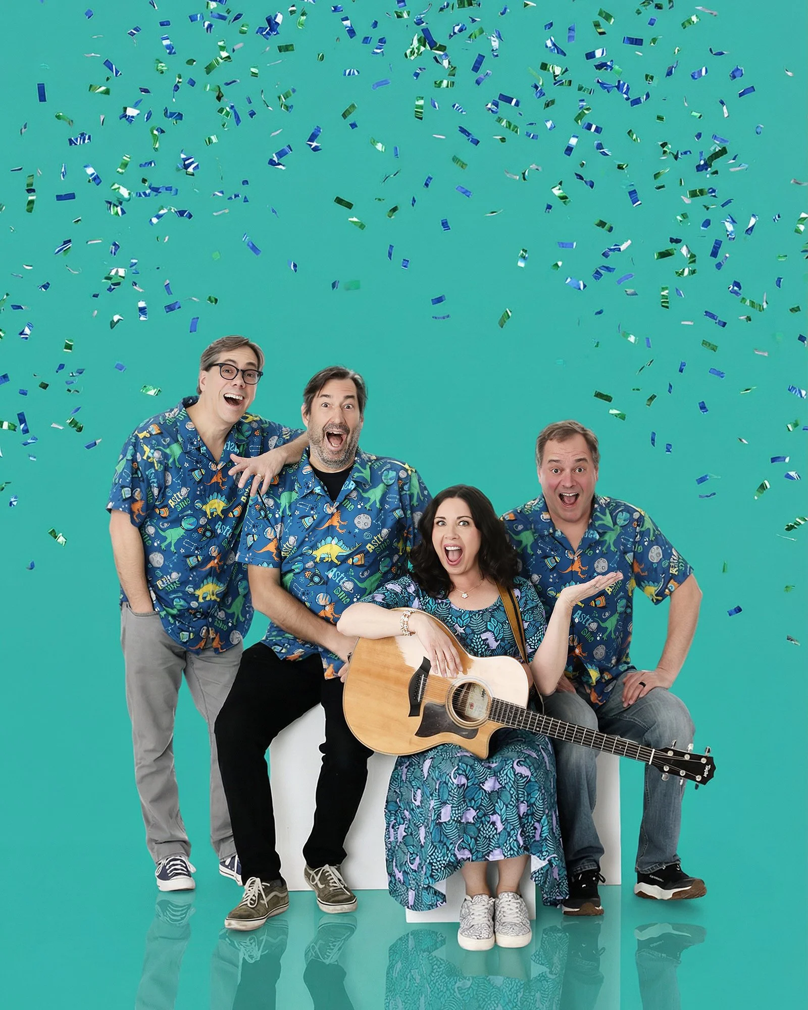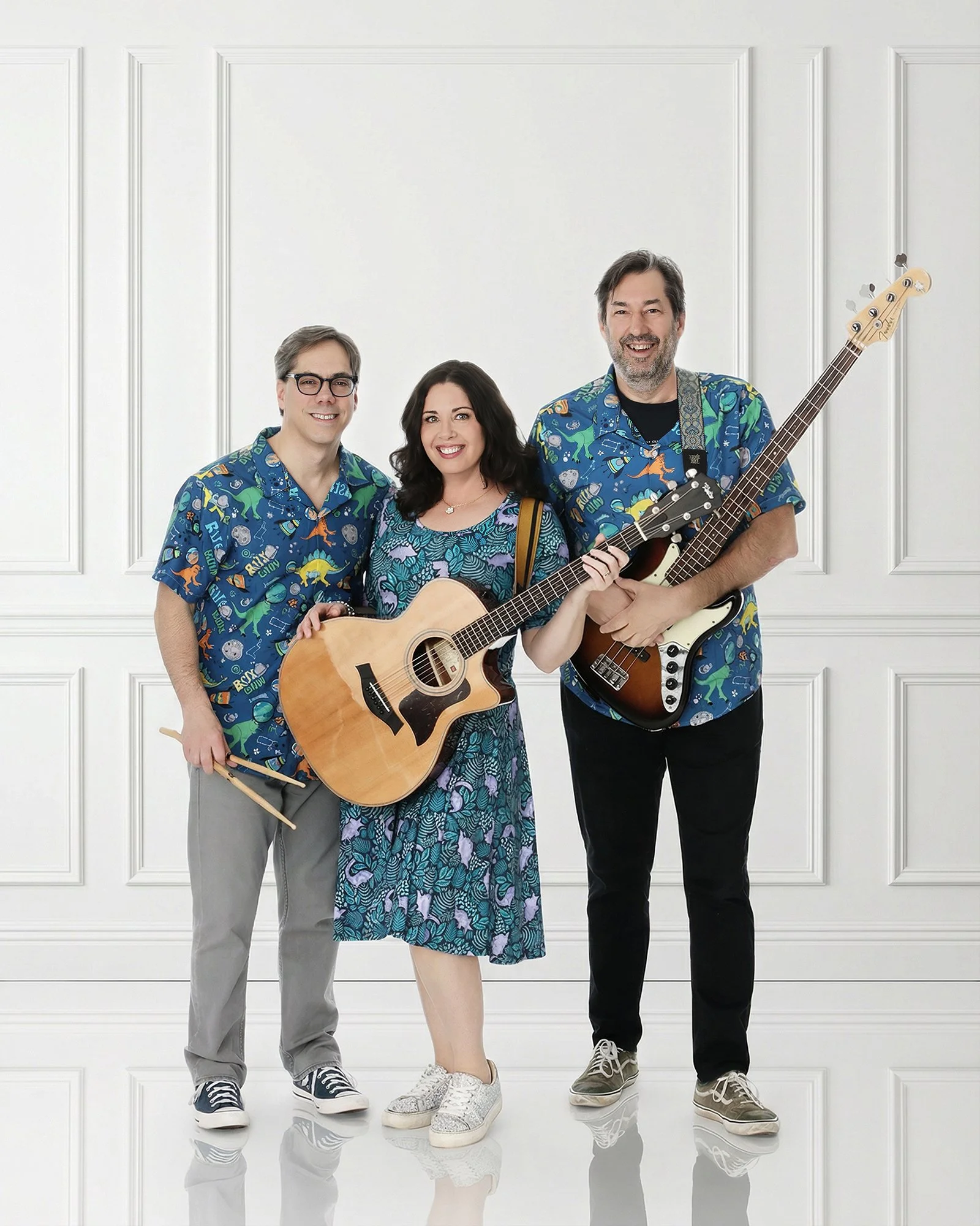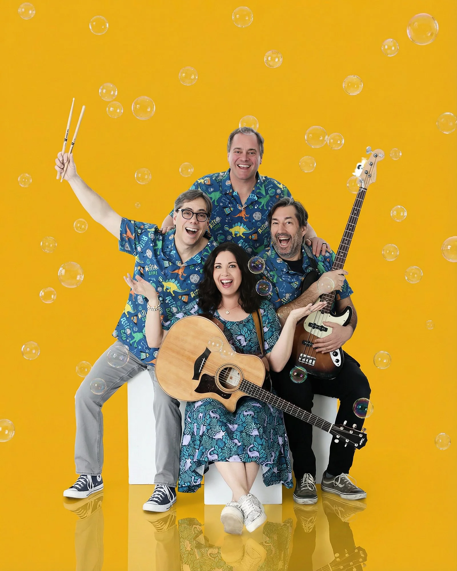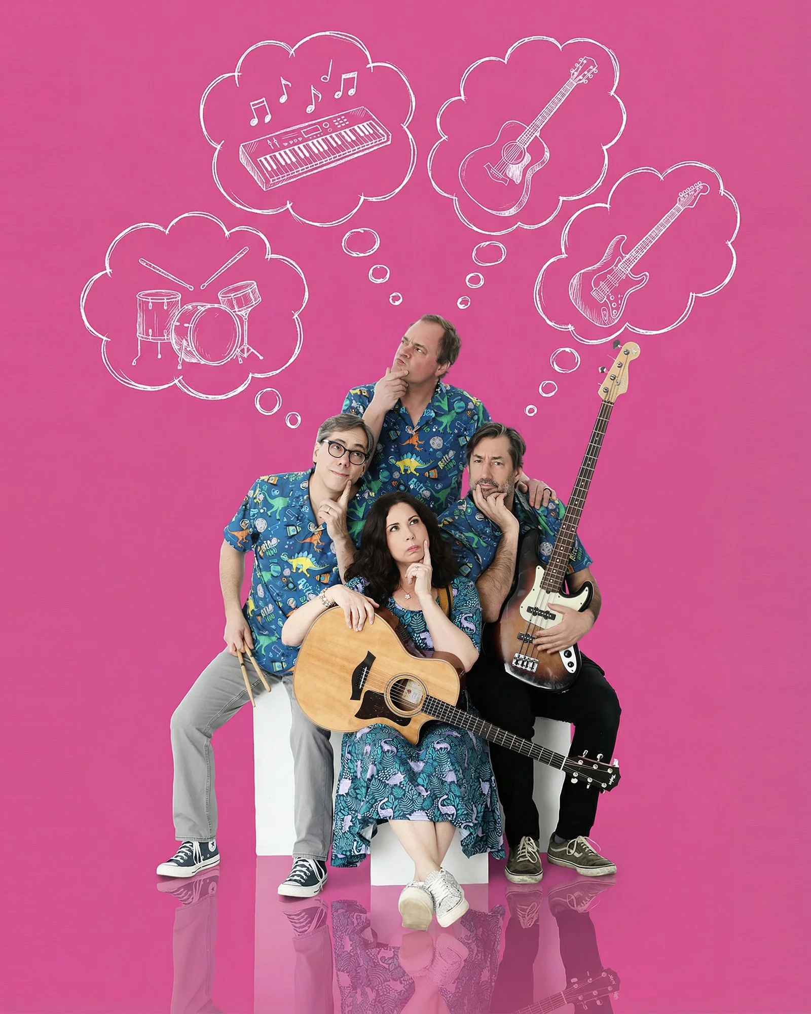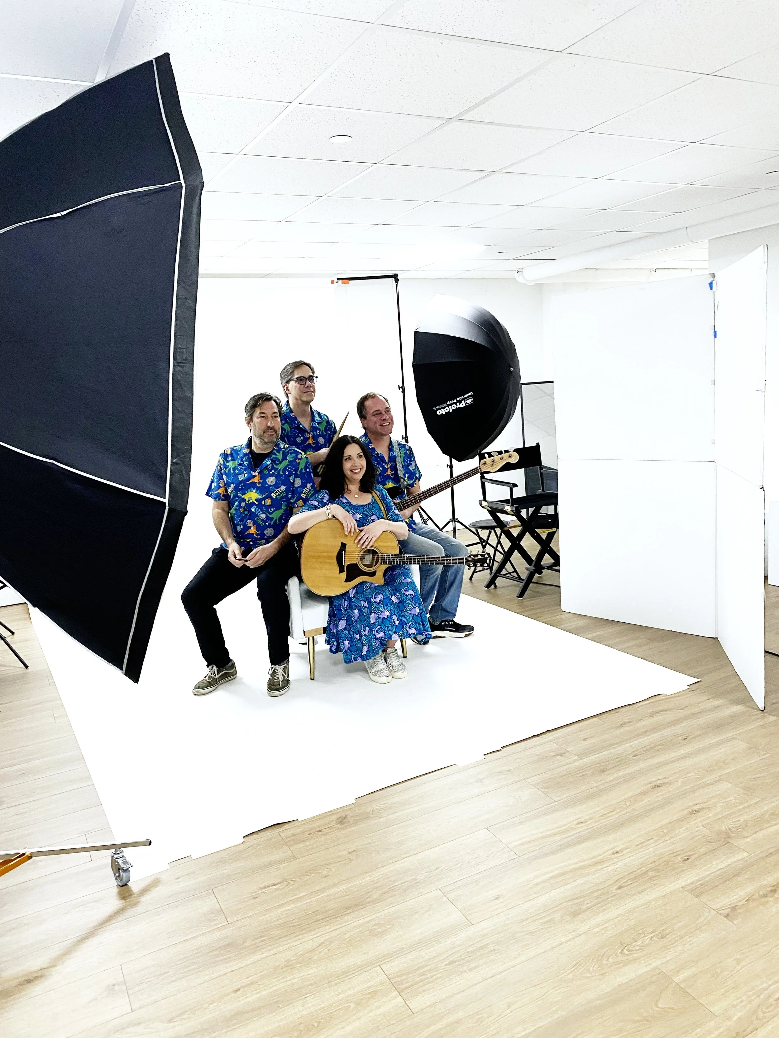 For this photo shoot, we used my white studio cubes! This gives us a variety of seating poses and heights for the different band members.