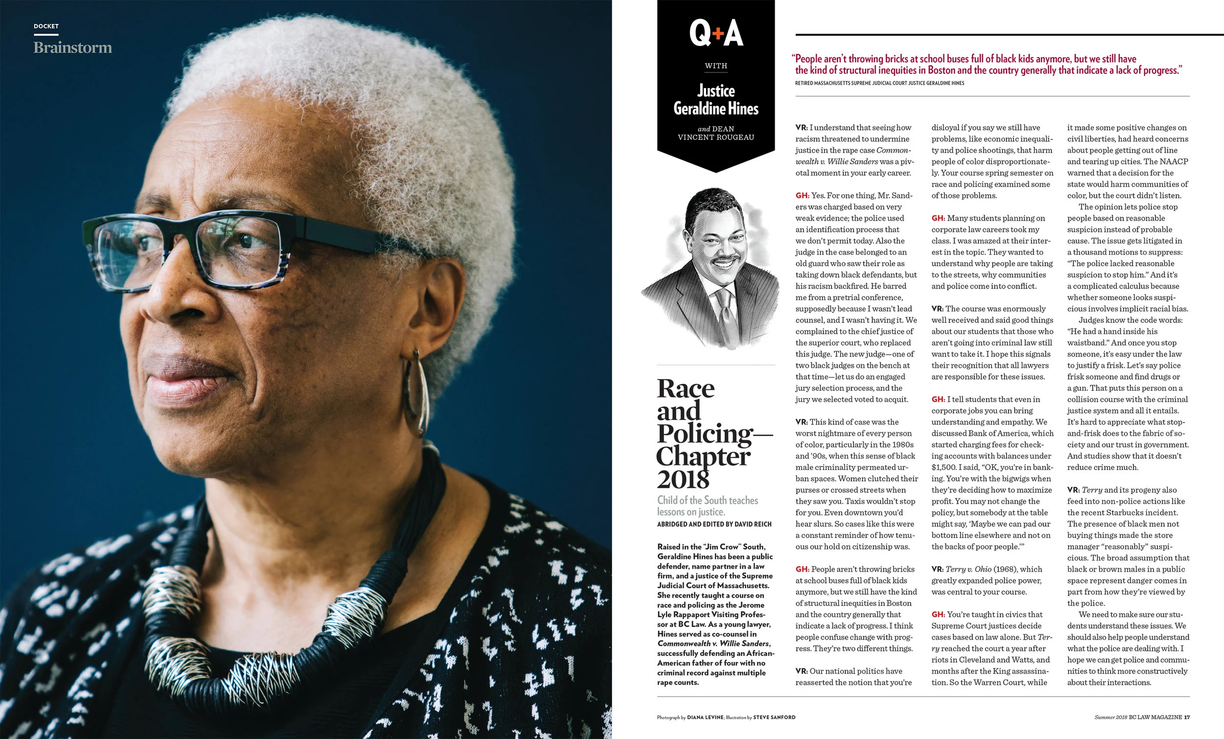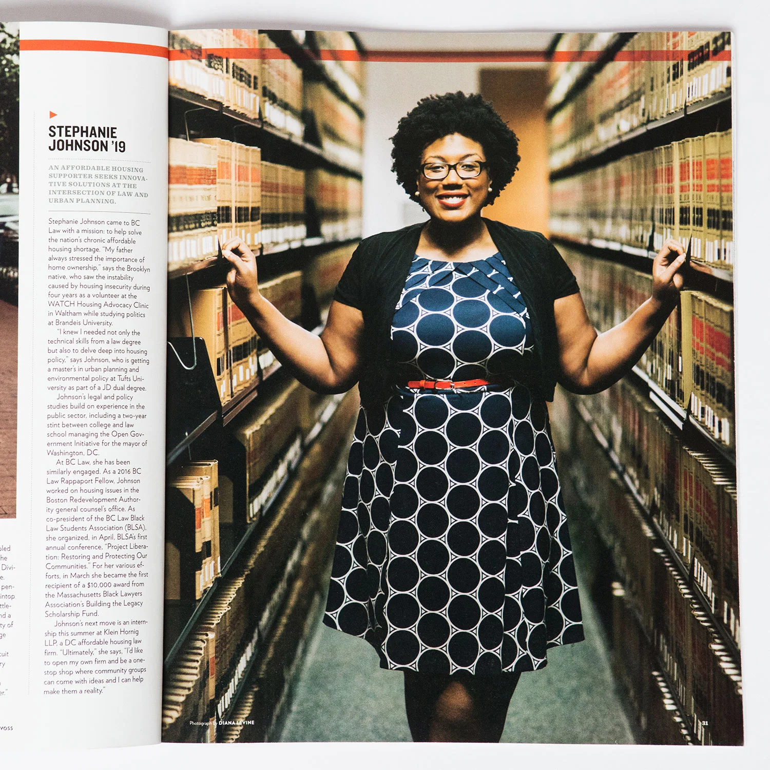 It was an honor to photograph The Honorable Geraldine Hines, retired Supreme Court of MA Justice, Dr. Leslie Shaff, and Stephanie Johnson, for BC Law Magazine! Art Direction by Bob Parsons / Seven Elm. Photos by Diana Levine / dianalevine.com. July 2018.
