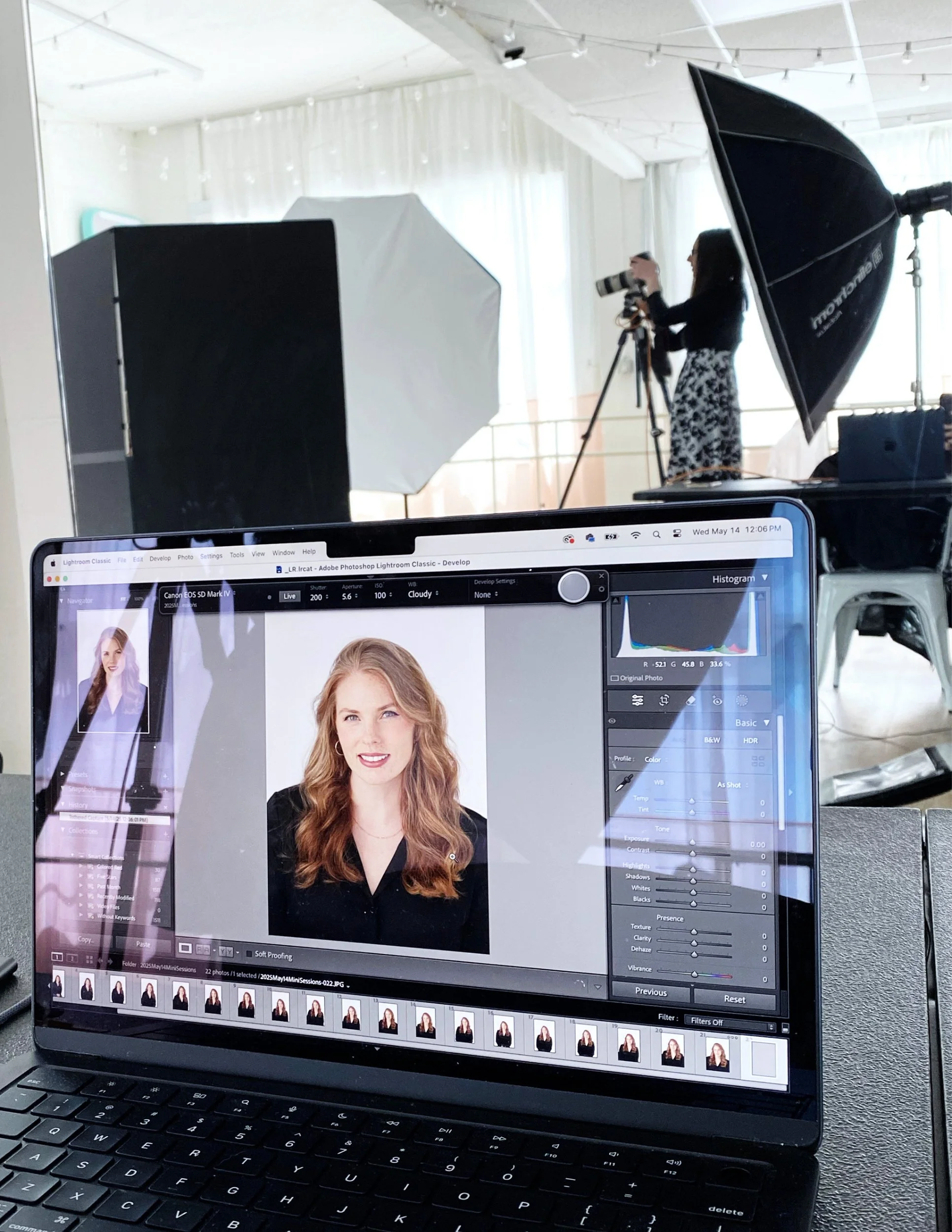 After your session, you will be able to review your portraits on the computer and choose your final photos immediately after your session! On-site photo selections are ideal, because you can see your photos as we’re taking them—and you get the final photos faster than by waiting for proofs!