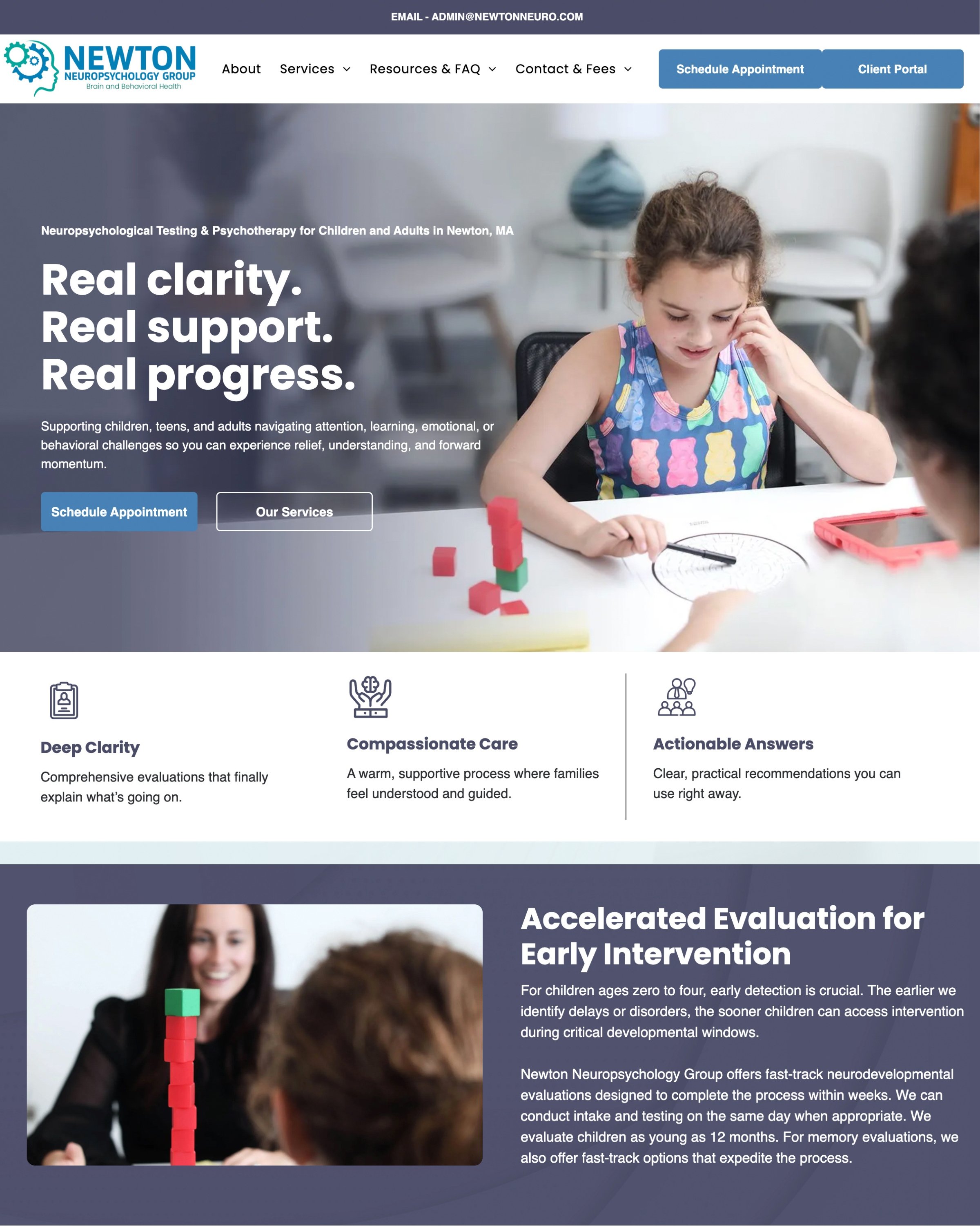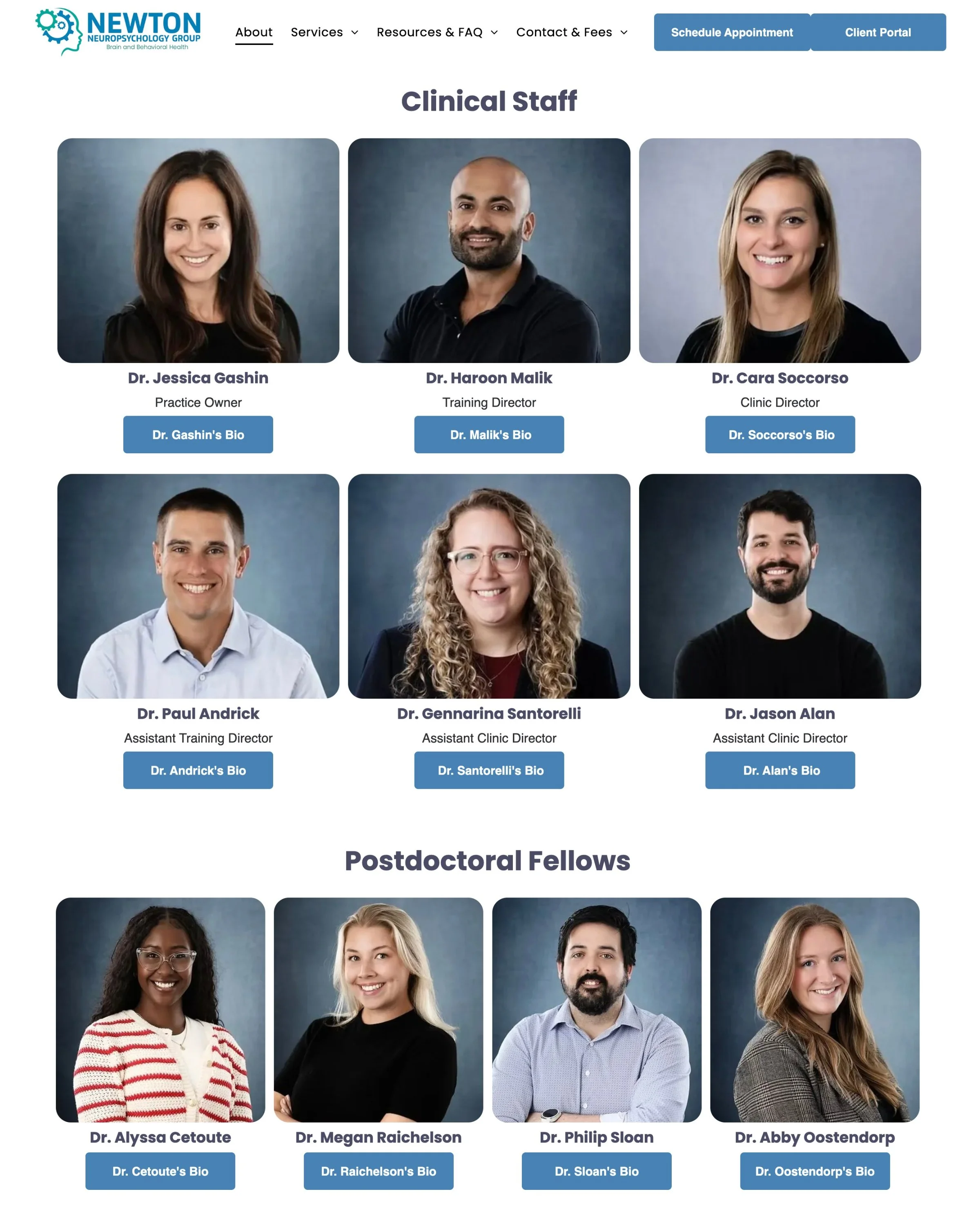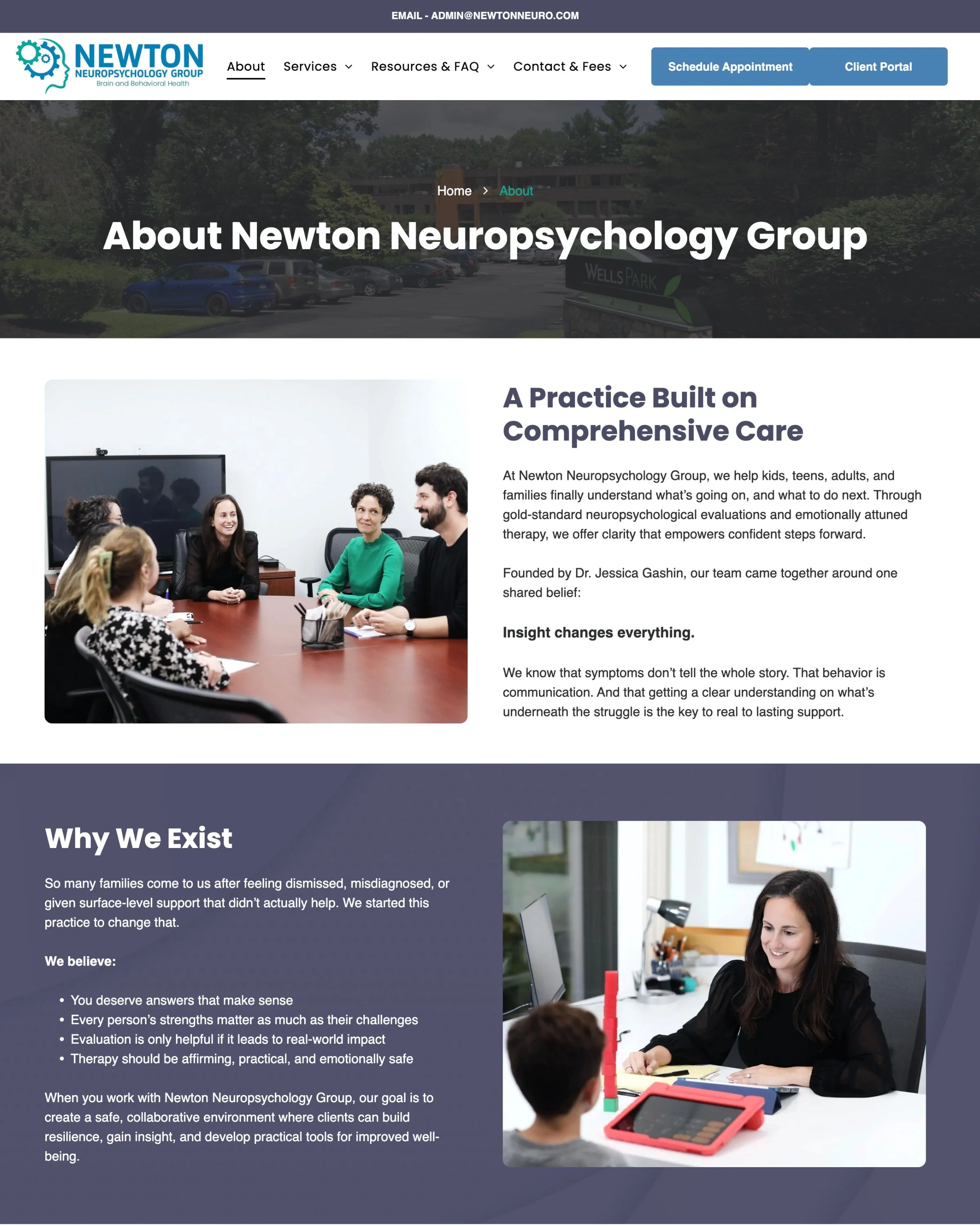 Marketing photos for Newton Neuropsychology Group website and social media: lifestyle portraits and headshots