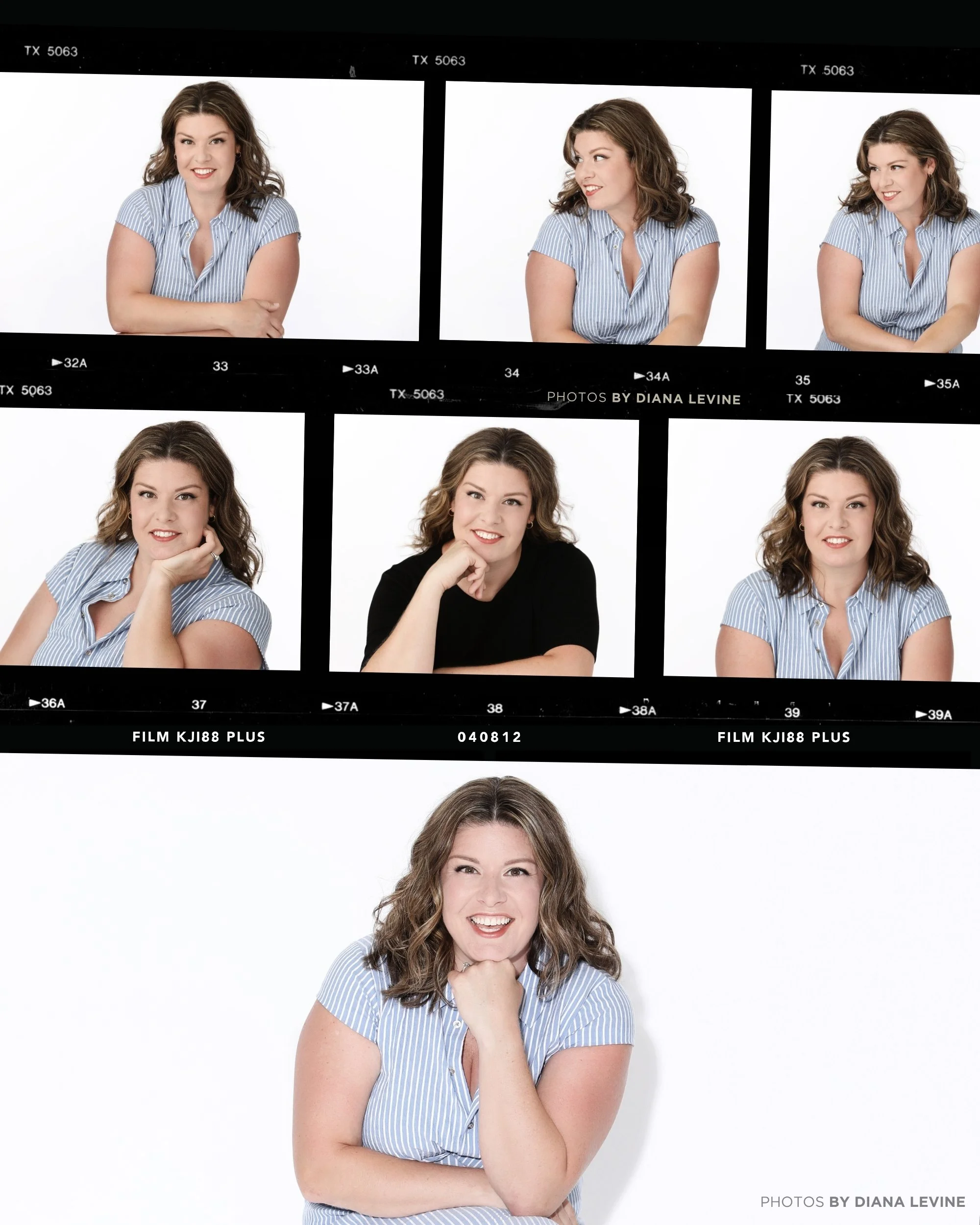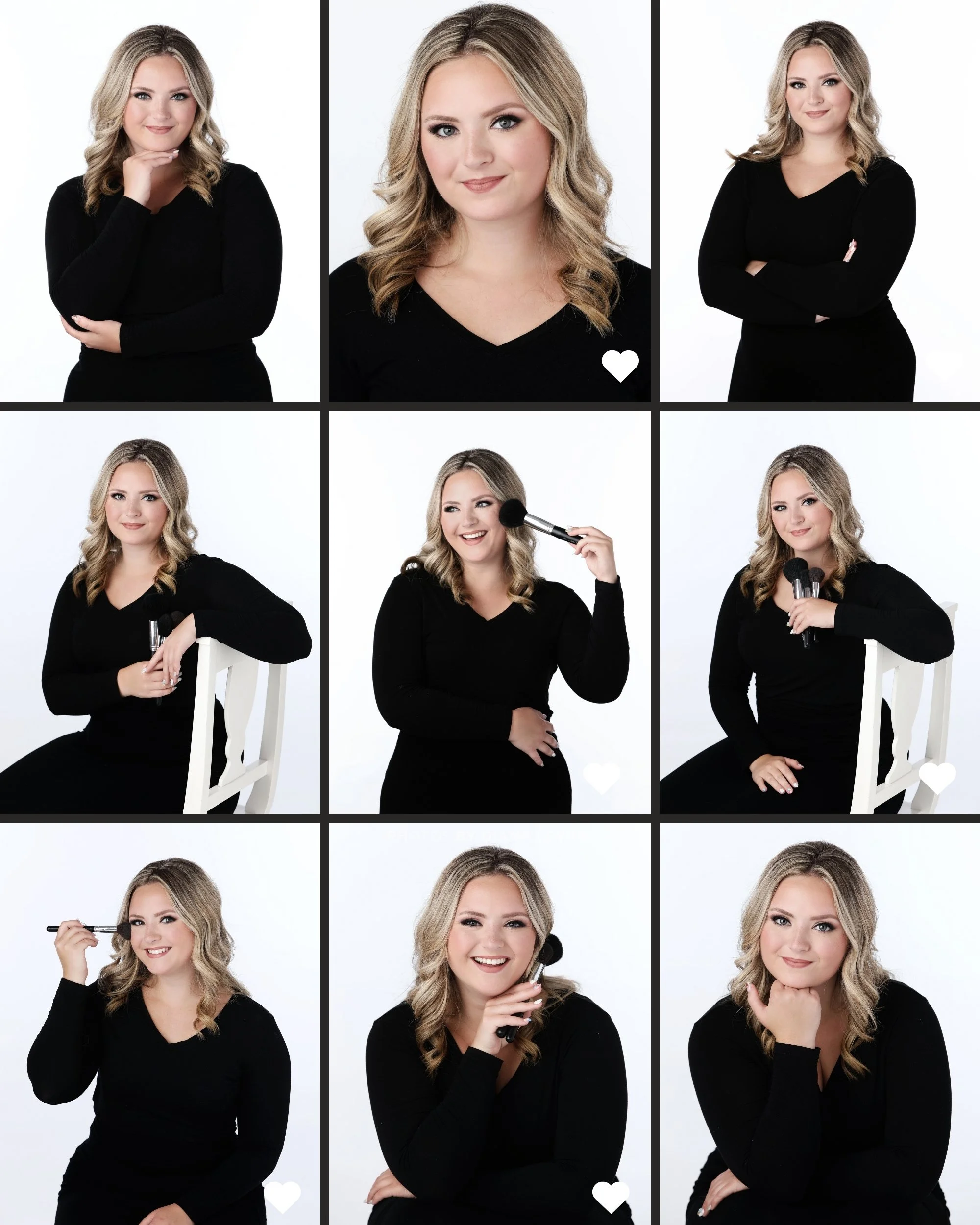 15 minutes is great for anyone who needs headshots and marketing photos, wearing 1 or 2 outfits, on 1 backdrop color. However, if you’d like to do 3+ outfits, spend some more time on posing and props—and photograph on 2 different backdrop colors, a Full 1 Hour Session is perfect for you.